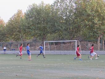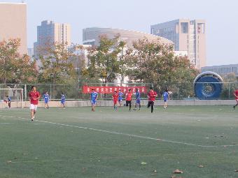 四点钟之前,双方球员便已准备就绪,等待着比赛的开始。环境院球员身着火红的球衣,犹如朵朵浮动的火苗在球场上闪动。他们精神抖擞,信心满满。