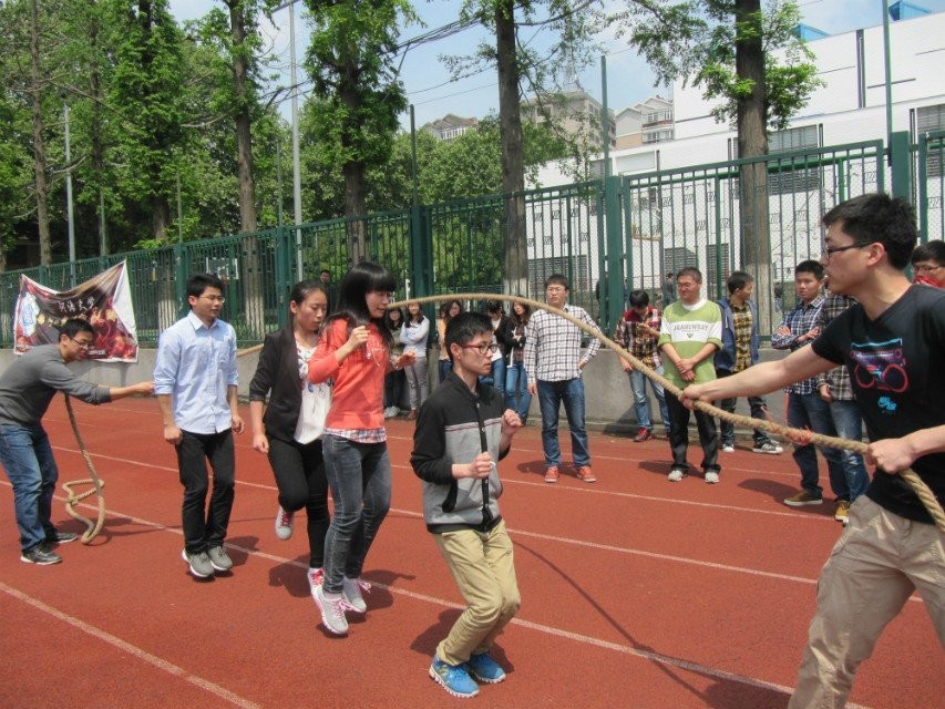活动分为团体比赛和个人比赛。团体比赛是以班级为单位,组织的拔河和跳绳两项运动。拔河比赛是轮赛制,即每个班级均与其他班级比赛一次,胜利计一分,负不计分。而跳绳比赛相对来说更注重团队的协同能力,八人一组同时跳绳,以一分钟为准,比较圈数。比赛伊始,各班角力正式开始,绳头两端的队员都卯足劲,欲将对手一战击溃;而跳绳比赛更是跌宕起伏,时有插曲。然而成败终究以实力为根据,最后结果是环工一班位居第一,拔得头筹。