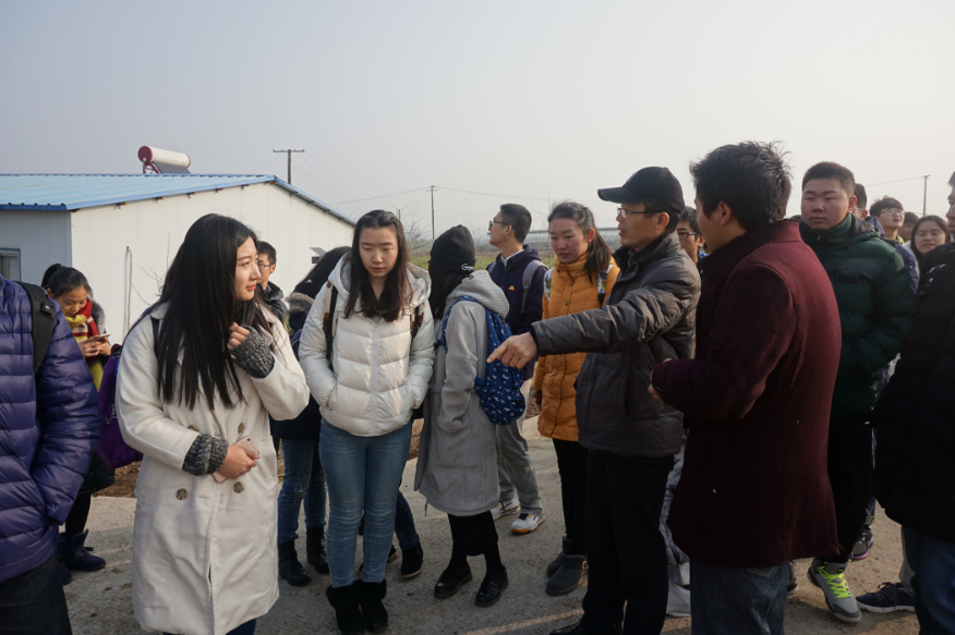 上午9时,学生骨干到达大学生村官创业园。大学生村官代表汪书记亲自在园区门口迎接,他向来访的学生骨干简要介绍了天王镇大学生创业园区的情况后,带领学生骨干进入园区实地查看畜牧、瓜果的种植养殖现状。汪书记介绍,他将开放自己的创业园,发展农业旅游,让旅客们实地观察各农产品的生产和生长过程,提升品牌美誉度。他还领着学生骨干进入鸡舍、羊舍,向他们介绍了创新的醋糟饲料和放养的健康养殖环境。大学生村官分享了他创业六年以来的创新思路和实践经验,语言朴素真实。介绍最后,他动情地说:“搞这个行业要耐得住寂寞,也需要敢想敢做,大学生们更是如此。”