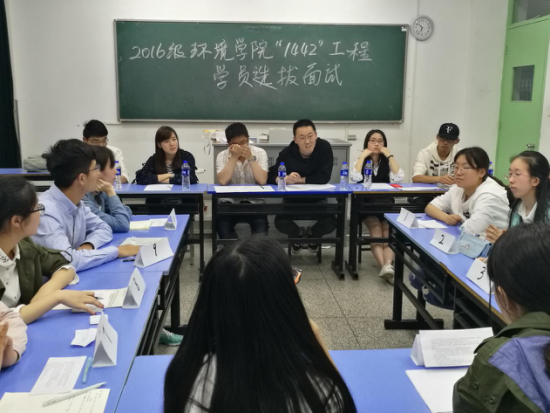 2017年4月18日晚,瓜子tv 2016级“1442工程”学员面试在致用楼举行。此次面试的评委组成员有瓜子tv 党委副书记曹松祥、研究生辅导员高臣老师、13级本科生辅导员郭鑫老师、16级本科生辅导员金意倩老师、院团委副书记姜科和李想、院学生会主席秦玲副主席唐路、院科协主席唐路明以及副主席李鼎新。