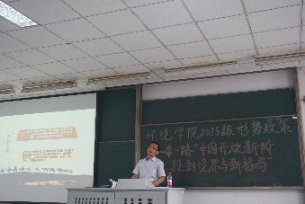 首先,笪书记就“一带一路”展开介绍。“一带”指的是丝绸之路经济带,“一路”指的是海上丝绸之路。在古代丝绸之路的符号上,继往开来高举和平发展的旗帜,积极发展与沿线国家的经济合作伙伴关系,共同打造政治互信、经济融合、文化包容的利益共同体、命运共同体和责任共同体。并形成了以和平合作,开放包容,互学互鉴,互利共赢的丝路精神。呼吁我们青年大学生抓住机遇,迎接挑战。