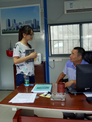 当日上午,全体成员来到南通四建集团公司于瓜子tv 建设项目的现场并受到了瓜子tv 项目总负责人于建光于经理的热情接待。在全体佩戴安全帽后团队成员和于经理就此项目进行了热烈讨论并了解到瓜子tv 项目由于是在先前没有建筑物的基础上进行建造,因此相较于那些将建筑物推掉再建的类型而言,其产生的建筑污染是明显少很多的。小组成员还就建筑废料和噪声问题进行了提问,于 于经理帮组员整理安全帽