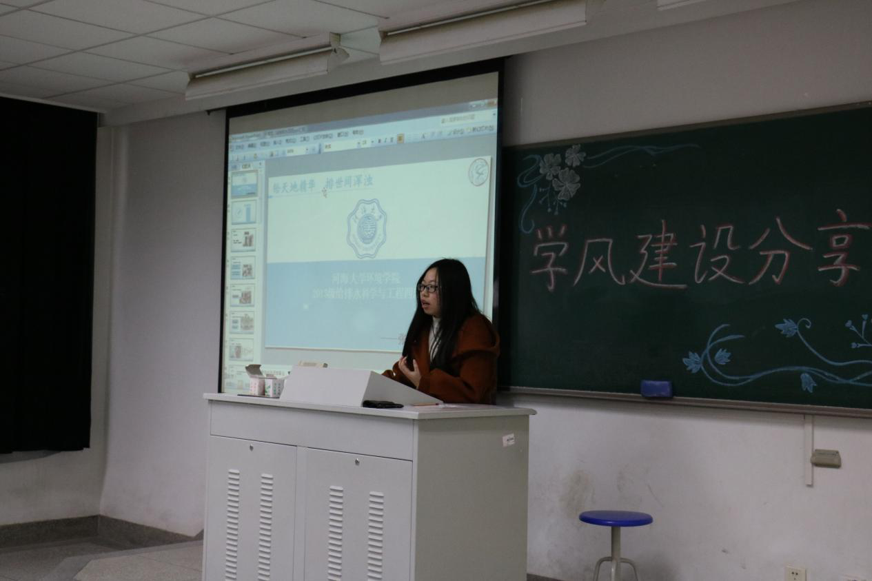 学风建设分享会于致用517教室召开,本次分享会请到了2014级环境工程一班班长汪静娴和2015级给排水一班班长吴帅航作经验交流。2016级辅导员老师金意倩出席并主持本次分享会。