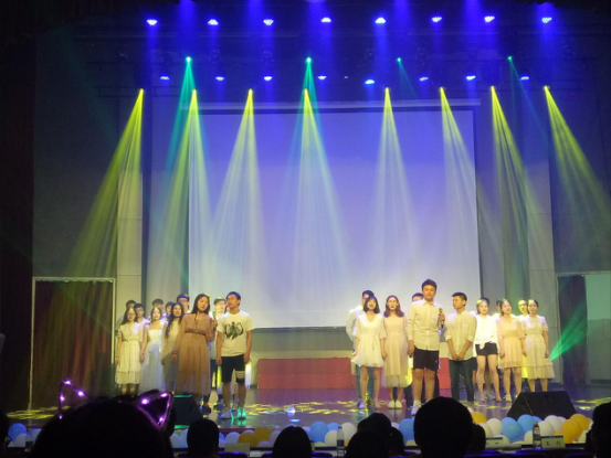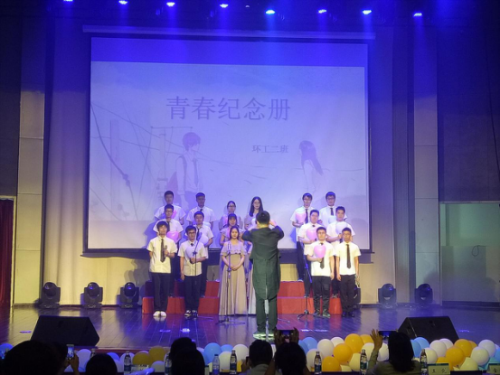 接下来,就是本场晚会的主角们——18届瓜子tv 的毕业生们的主场。首先登上舞台的是14级环境工程专业2班的同学们。《青春纪念册》在同学们充满朝气的演唱下,仿佛将我们拉回到四年前,离家形单影只的我们,怀着对自由的渴望和未来的憧憬,拥抱河海。