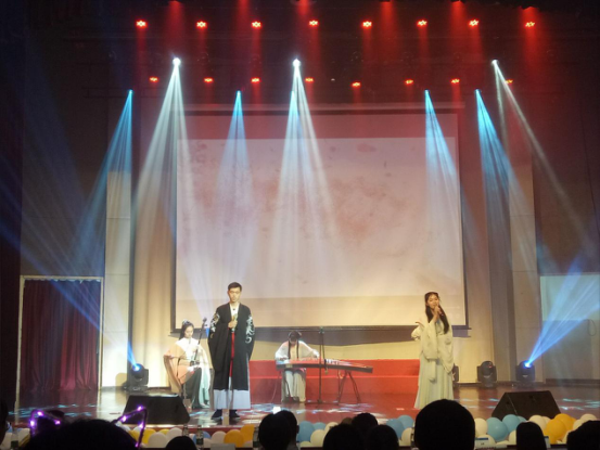 时光飞逝,很快晚会迎来了第三部分——似水年华。由14级环科一班的同学们带来的古典音乐演奏《凉凉》,其声呜呜然,如怨如慕,如泣如诉,余音绕梁三尺,令人心驰神往。