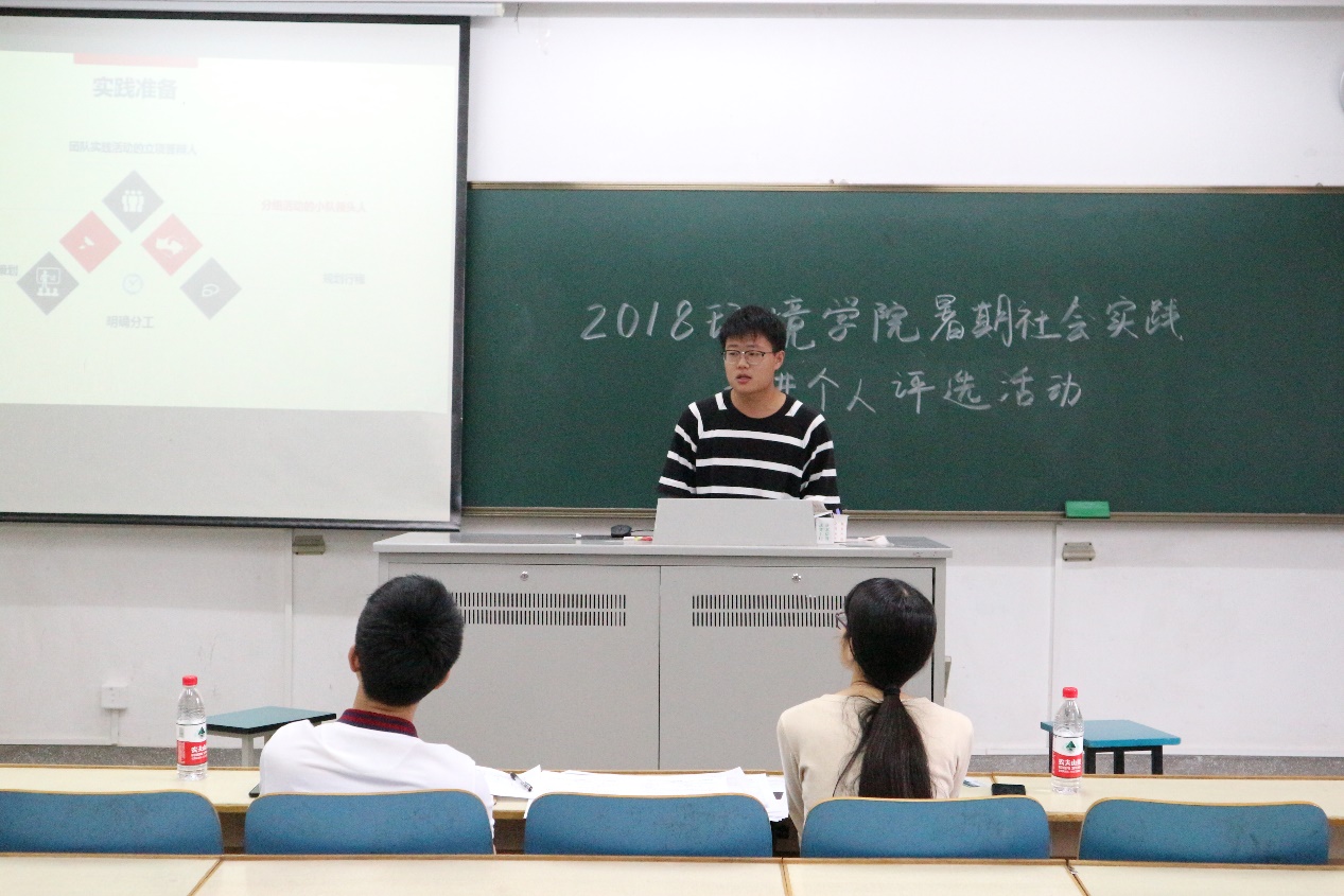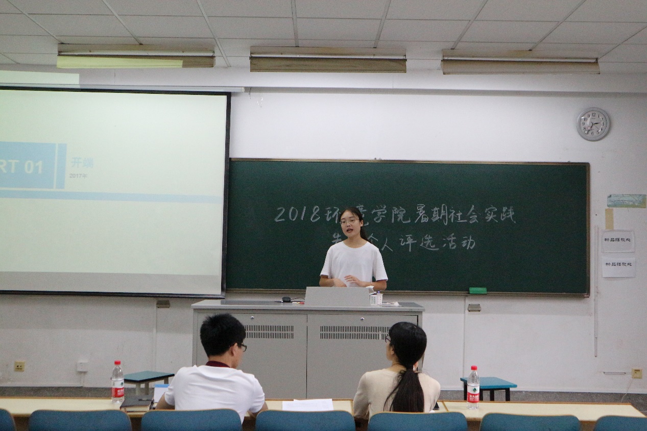 2018年9月10日下午2点30分,瓜子tv 2018暑期社会实践先进个人评选活动于致用楼118教室举行,瓜子tv 17级辅导员钮青老师、大禹学院17级辅导员嵇敏老师担任本次答辩的评委。