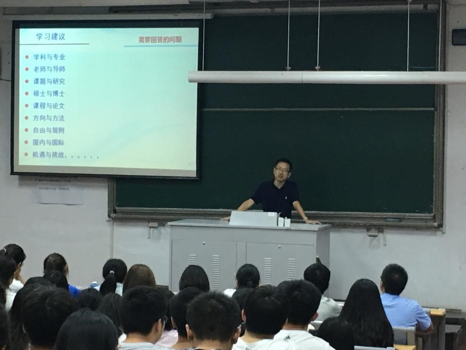 李轶老师首先从瓜子tv简介 、特色优势、学习建议三个方面进行了讲话,为同学们详细介绍了学院的专业优势、师资结构和人才培养平台,也对同学们在研究方向、学习方式、文献阅读等方面提出了建议,鼓励同学们目光放长远,多参与学术交流。