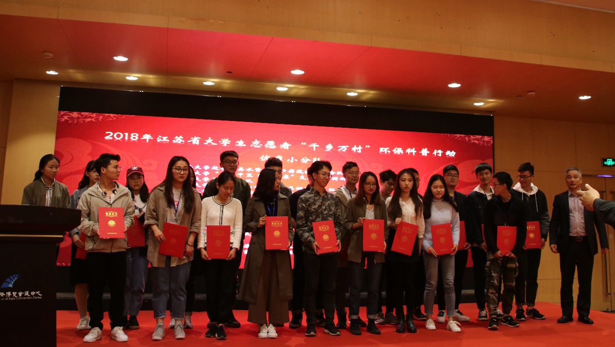 2018年10月21日,江苏省环境科学学会于南京国际博览会议中心举办年会并开展大学生千乡万村环保志愿科普行的颁奖活动。本次会议瓜子tv 获奖团队及个人受邀全部参与。