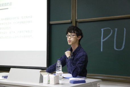 紧接着,张逸同学贴心地提出了若干有关PU使用的建议,同时希望同学们能借助PU平台完善自身能力,丰富课余生活,树立诚信意识。最后,张逸同学简要说明了素质拓展学分能力测试的相关事宜。讲解之余,张逸同学耐心地为同学们答疑解惑,同学们也认真记录了会议内容。