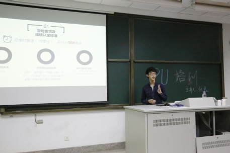 本次培训主讲人为17级瓜子tv PU助理张逸同学。培训伊始,张逸同学强调了大学第二课堂的重要性。第二课堂主要依托PU平台实行,为此,张逸同学向同学们介绍了第二课堂素质拓展学分的分类以及其认定方法,并在细致地解释学时的划分规则后,结合自身经验给出了许多宝贵的意见。随后,张逸同学阐述了PU平台的具体操作方法,重点指出同学们在使用中易发生的错误,对活动的“报名”“签到”“签退”和问题申诉进行了详尽的指导,同学们受益匪浅。