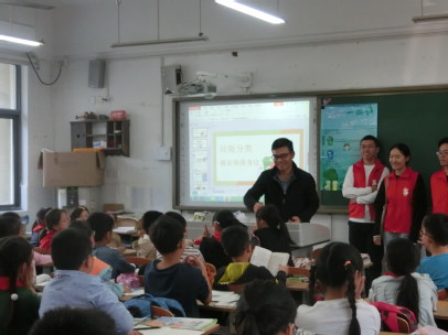 刚走进教室,志愿者们就受到了小朋友们的热烈欢迎。将活动海报张贴在黑板后,志愿者们马上就开始了本次活动的第一个环节——知识回顾。志愿者们用图文并茂的PPT并配上了动听欢快的音乐给小朋友们回顾了上一次讲述的关于垃圾的分类、去向及处理方法等方面的内容。期间,小朋友们全神贯注,认真聆听,并积极投入到与志愿者们的互动中,课堂气氛非常活跃。通过约20分钟的知识回顾,志愿者们重新唤起了小朋友们对垃圾分类等相关知识的记忆,并由此引入到了下一环节。