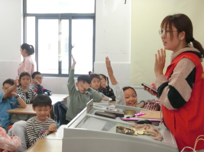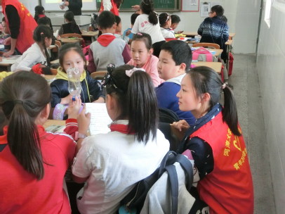 下午13:30,志愿者们准时集中在地铁站,随后一同搭乘地铁前往将军山小学。志愿者们完成签到后,负责人将他们平均分成两组,并让他们分别到四年级(1)、(2)两班开展志愿活动。