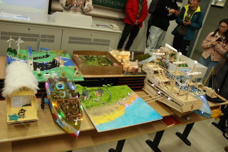 评委们进行了细致的观察与探讨,最终得出了评选结果:最优秀的沙盘模型为第六组的水溅影舞、清流电奔,最优秀的船只模型为第三组的远航之光。