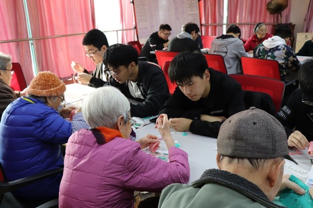 在一同完成手工作品的过程中,也发生了一些小插曲。一位曾在文工团担任文艺工作的的奶奶为志愿者们演唱了一首动听的《蝶恋花》;此外,还有一位饱含学问的爷爷在得知志愿者所学的专业后,与她讨论起了专业的相关知识。在活动中,老人们夸奖志愿者们心灵手巧,与他们建立起了深厚的情谊。
