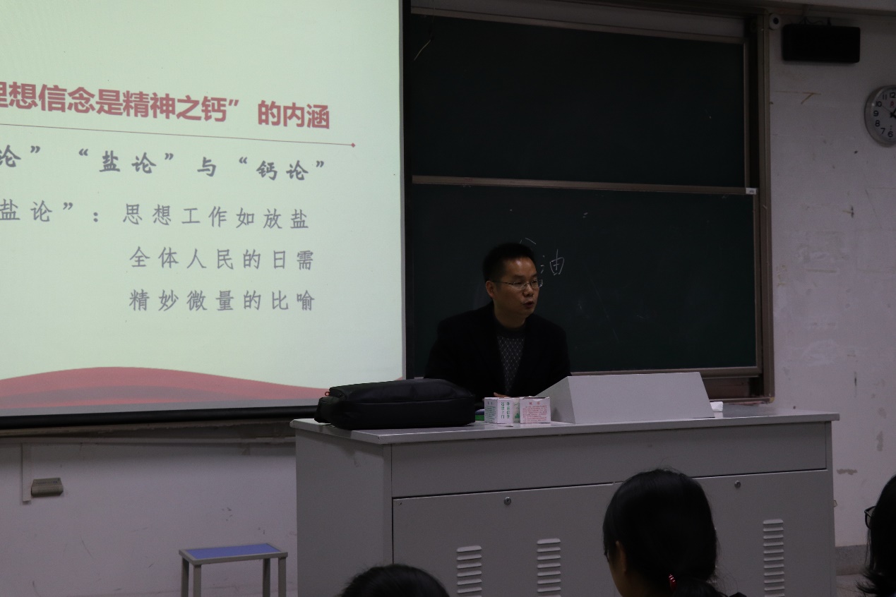首先,郑教授向同学们阐明了“理想信念是精神之钙”的内涵,由“钢”论,“盐”论到“钙”论层层递进,指出不同时期的理想信念的不同特点,尤其强调当代社会理想信念所适用的“钙”论既钢又盐的特点。郑教授认为,信仰是日常的,且极易流失,它是一种力量,需要补充,因此信仰的坚守需要努力。