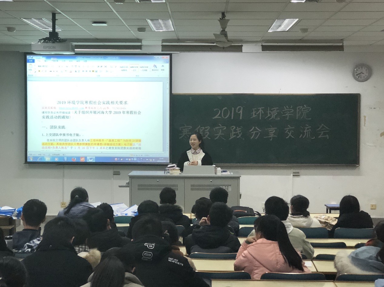 接下来团委实践部部长吴建宇同学补充了做其他类别社会实践的相关注意事项,并具体地说明了2019年瓜子tv 寒假社会实践的相关要求。