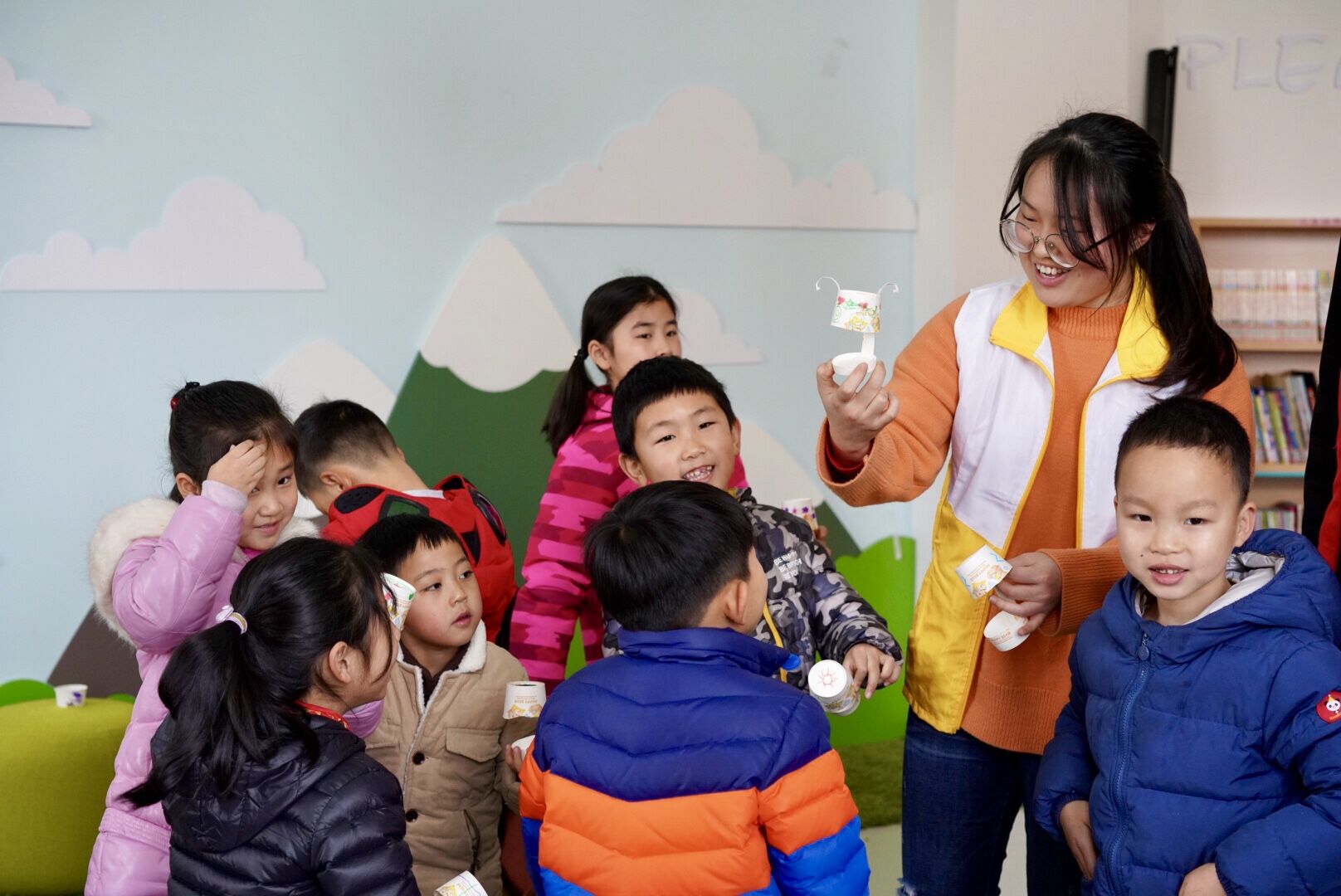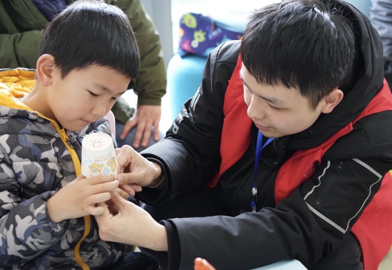 最后,志愿者们带领小朋友一起制作手工小台灯。只用简单的工具和画笔,小朋友们的动手能力和想象力得到了锻炼,同时也学会了如何与他人合作。