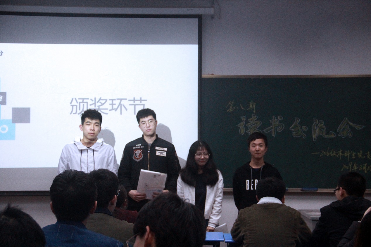 瓜子tv 硕士研究生邓博仁学长、2016级本科生党支部副书记姚冯懿、组织委员王冬生、宣传委员宋朗润分别为获奖同学颁奖。