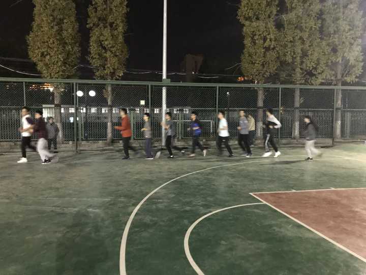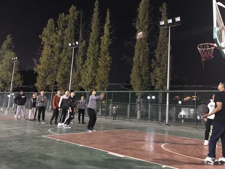 六点半,两位老师组织课前集合,并进行篮球赛事的规则的简单讲解。