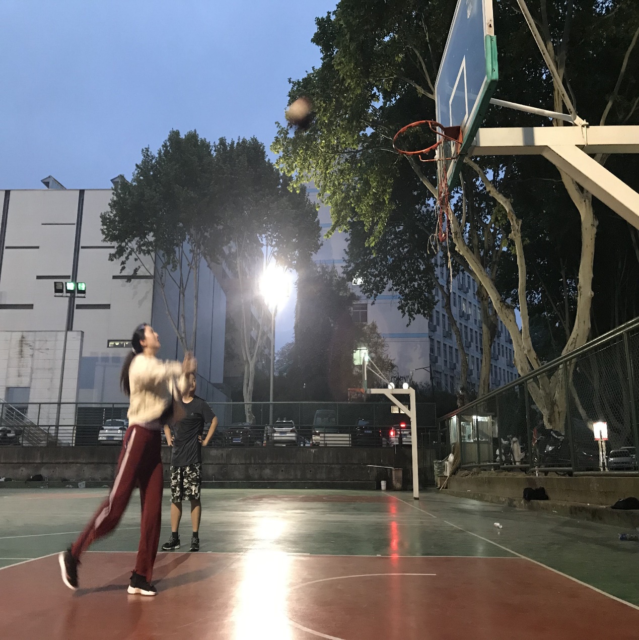 投篮过后便是上篮练习。两位老师讲解了上篮的基本动作要领,做了简单的示范,便在篮下组织同学们的上篮练习。