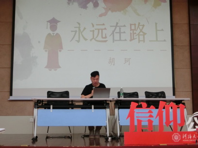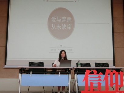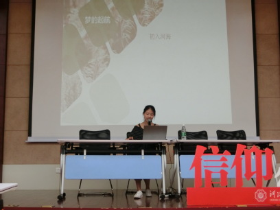 最后是2018年获得“海韵风华”称号的李鼎新同学。她向学生们讲述了她大学经历的温暖故事,也特别提到了舍友之间应坦诚相待,营造良好的宿舍关系。