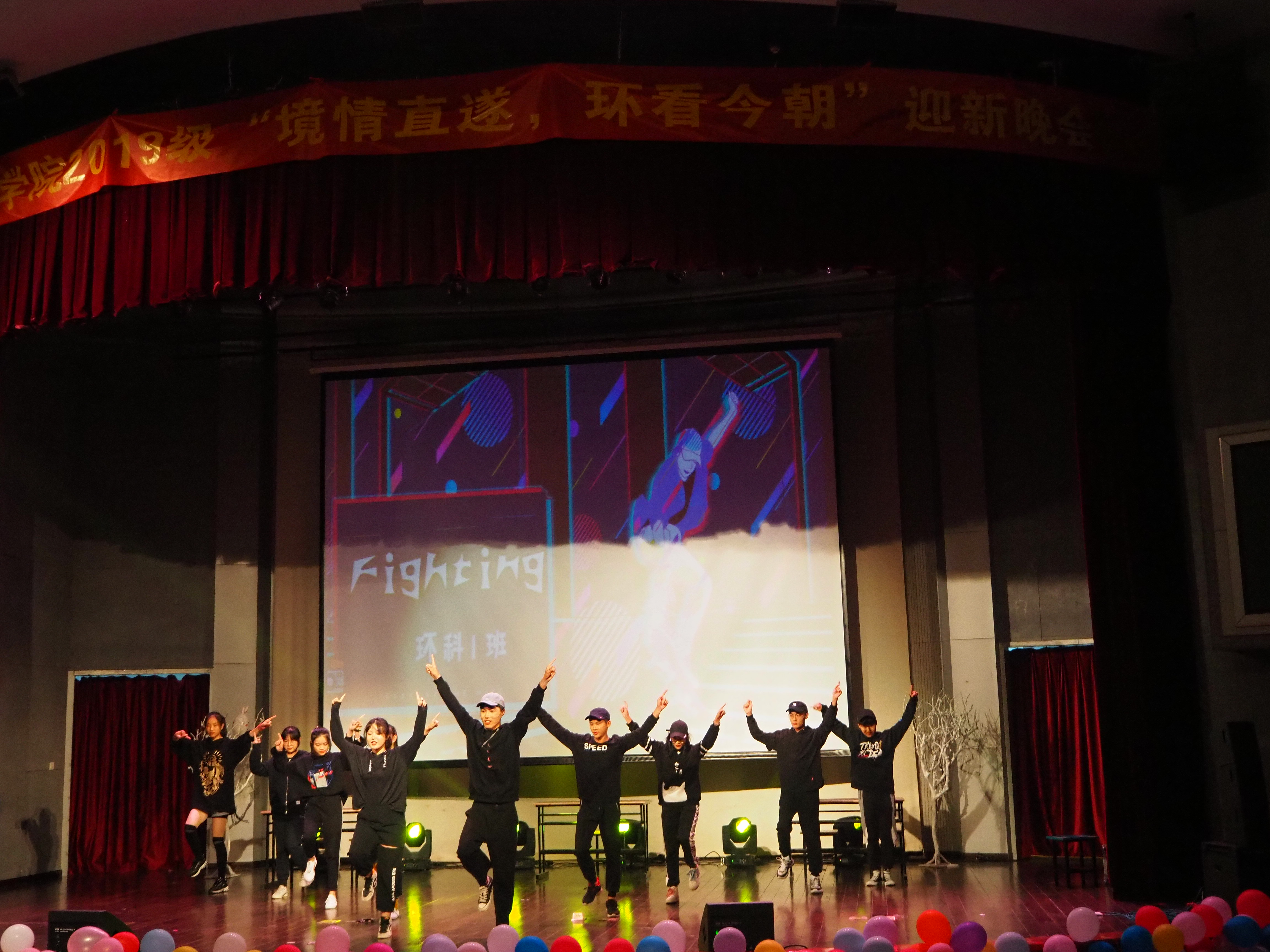男生们炫酷的步伐伴随着强烈的节奏,让我们体会到力量之美;女生们曼妙的舞姿伴随着动感的旋律,让我们体会到柔和之美。环科一班的潮男靓女让这两者的碰撞又迸发出了不一样的火花,用超炫舞蹈再次点燃了今天的晚会。