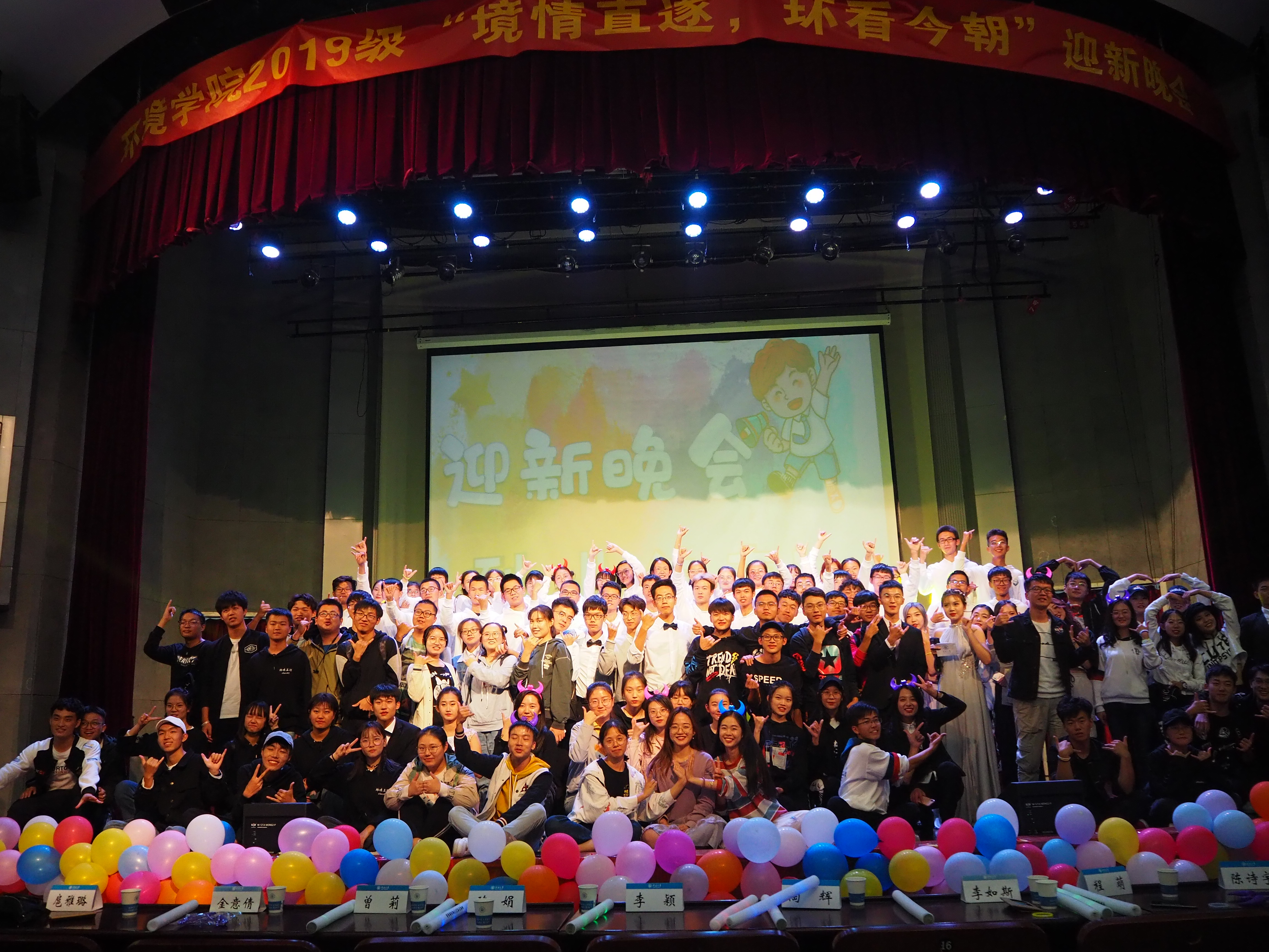 热场之后,主持人对出席晚会的嘉宾进行了简单介绍,2019级环境2班班导师李颖老师和生态1班班导师陈娟老师也上台发言了。两位老师表达了对本次晚会的期待,还向同学们送出了诚挚的祝福。此环节结束后,“境情直遂,环看今朝”迎新晚会正式拉开了帷幕。