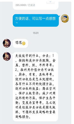 此次活动有近两百位同学参与,他们利用自己的课余时间在线上宣传垃圾分类的知识、意义和方法。此次活动不仅让更多的民众意识到了垃圾分类的重要性以及详细了解了如何正确地去进行垃圾分类为我国垃圾分类的进步尽了一份力,也提升了参与同学的人际交往能力和沟通能力,帮助他们结识了更多的朋友。