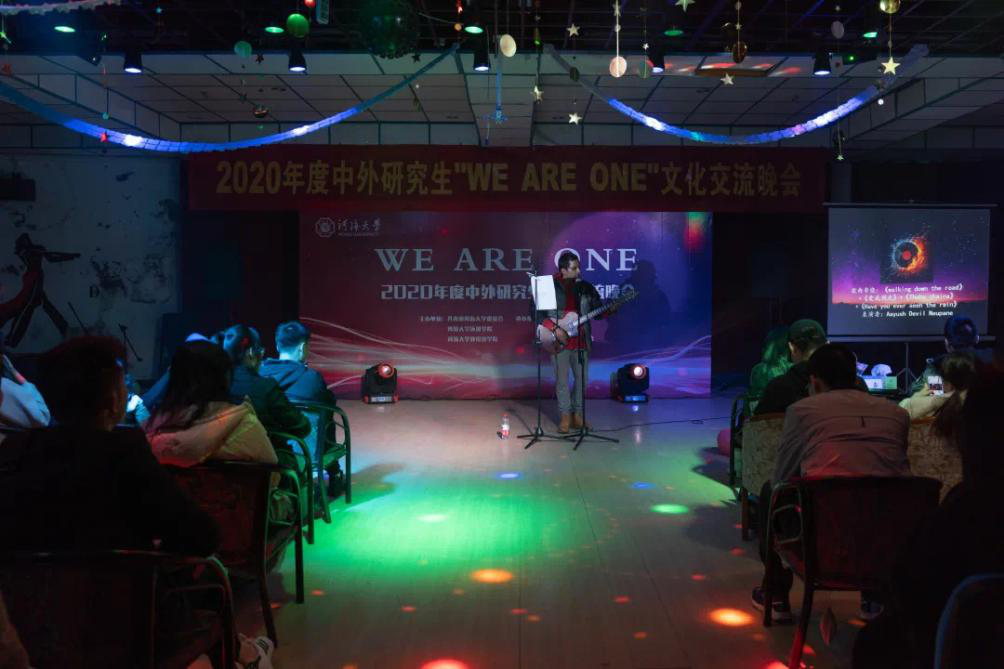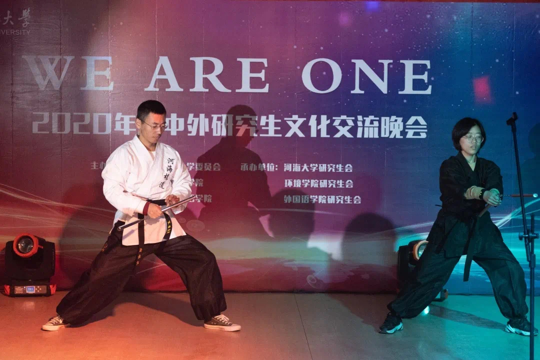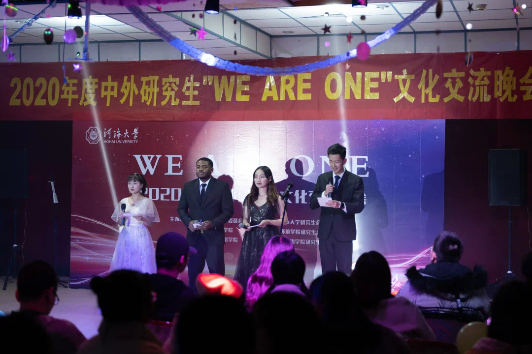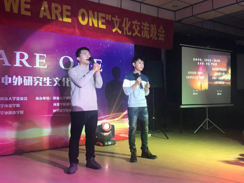本次晚会以舞蹈、歌曲、乐器、双截棍等多种艺术形式展现了不同国家、不同民族之间的绚烂多彩的文化,劲歌热舞的表演中,多元文化在此融合共通、相互欣赏。希望在河海这个美丽的校园中,中外研究生可以相互交流、相互学习、团结合作、共同奋进!