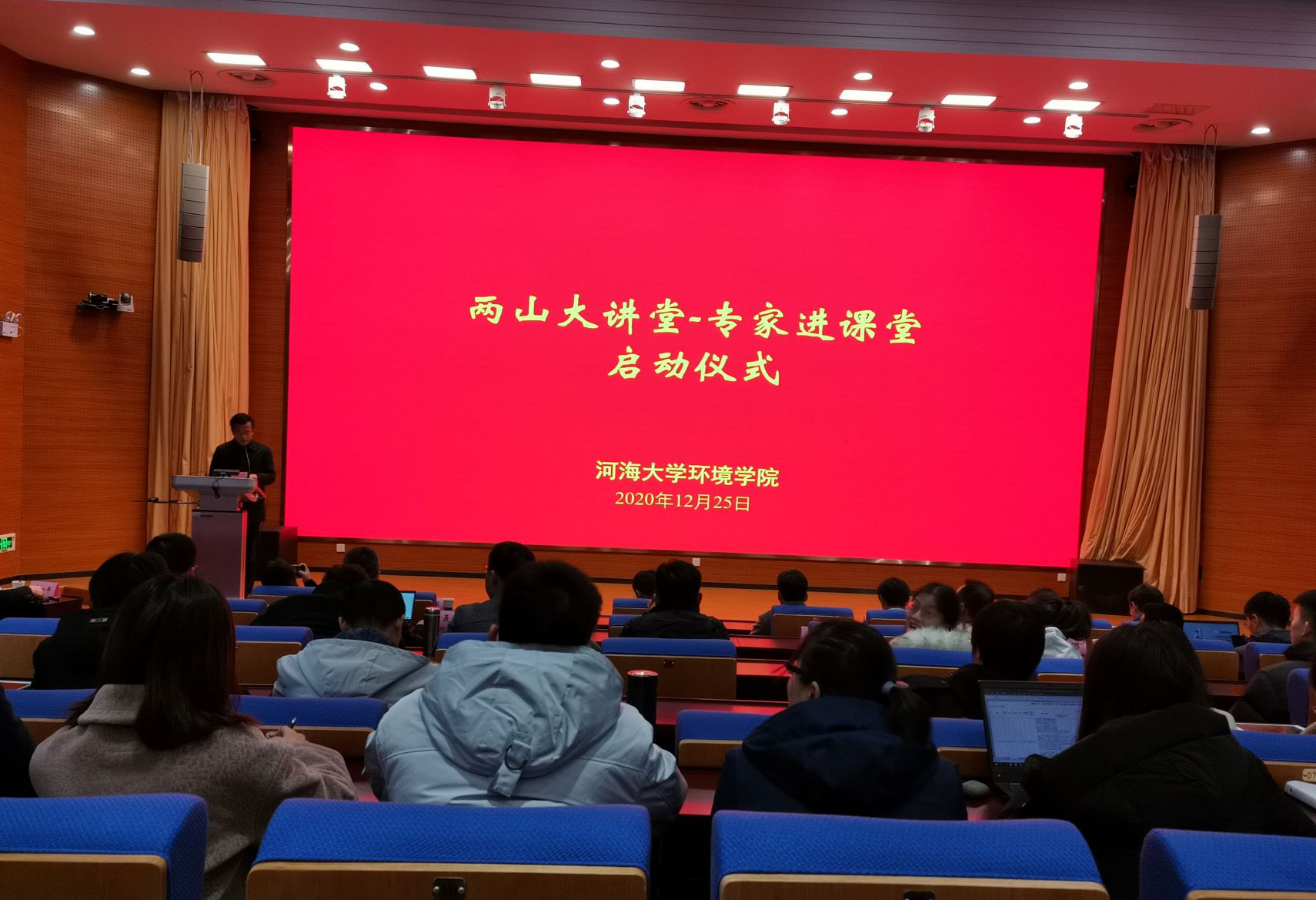 12月25日,瓜子tv 两山大讲堂-专家进课堂系列报告启动仪式暨第一、二讲成功举行。教务处副处长吴志勇、学院党委书记笪学军分别在启动仪式上致辞,对瓜子tv 设立两山大讲堂-专家进课堂系列报告给予了肯定。两山大讲堂邀请行业内各方向的专家领导、从业员,以报告的形式为学生授课,以此提高学生对学科相关领域的综合认知水平与实践工程认知,促进对学科的深入了解与研究。