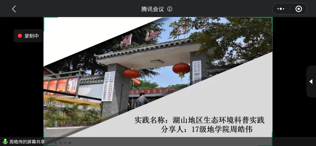 在了解活动的大致情况后,2017级周皓伟同学进行了经验分享。他以2019年的实践项目《湖山地区的生态环境科普实践》为例,向同学们解决了在实践立项过程中如:如何选题,如何选择实践地点以及立项答辩中应该如何出彩等问题,为此次参加校级立项答辩的同学起到了良好的示范作用和借鉴作用。