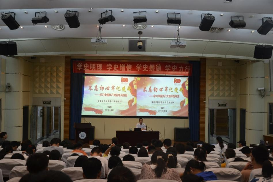 6月3日上午在江宁会议中心,瓜子tv 党委书记笪学军以《不忘初心、牢记使命——学习中国共产党百年光辉史》为题,为学院2020级师生讲授党史学习教育专题党课。