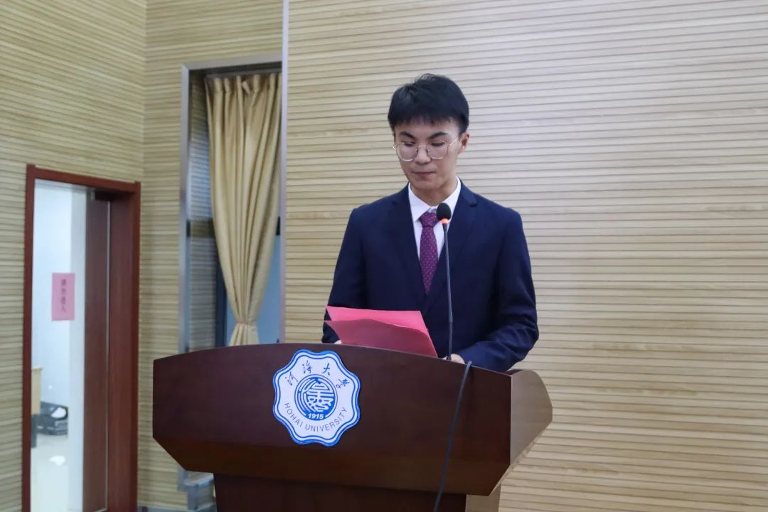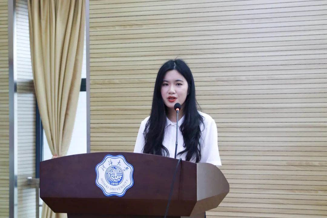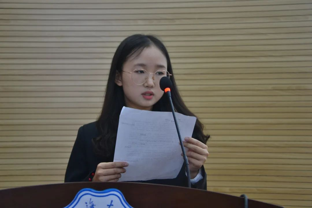 校学生会执行主席徐叶涵同学进行致辞。徐叶涵同学表示,瓜子tv 学生会在学院党委的领导下,学院团委和校学生会的指导下,刻苦努力、积极进取、不断创新,开展了一系列卓有成效的工作。她对瓜子tv 学生会表示最衷心的感谢,也祝愿在未来的道路上,瓜子tv 学生会能带着这份初心与荣誉坚定走下去。徐叶涵同学提出以下几点希望:第一,希望同学们满怀理想,坚定信念。站稳政治立场,心怀远大理想,与新时代同向同行。第二,希望同学们努力锤炼学习能力、竞争能力和自主创新创业能力。扎实基础、丰富实践与提升能力三合一,与时代并进,与社会交接,科学规划职业生涯,努力培养综合能力。第三,高标准严要求,做好学生服务工作。希望学生干部们对自己高标准、严要求,努力成为让党放心、让青年满意的优秀学生干部。最后希望同学们以饱满的政治热情和高度负责的态度,完成大会的各项任务,携手推进瓜子tv 建设发展,共同打造瓜子tv 特色组织品牌。助力广大同学成长为具备“中国灵魂、全球视野、河海特质”的时代青年,以优异成绩庆祝中国共产党成立100周年。