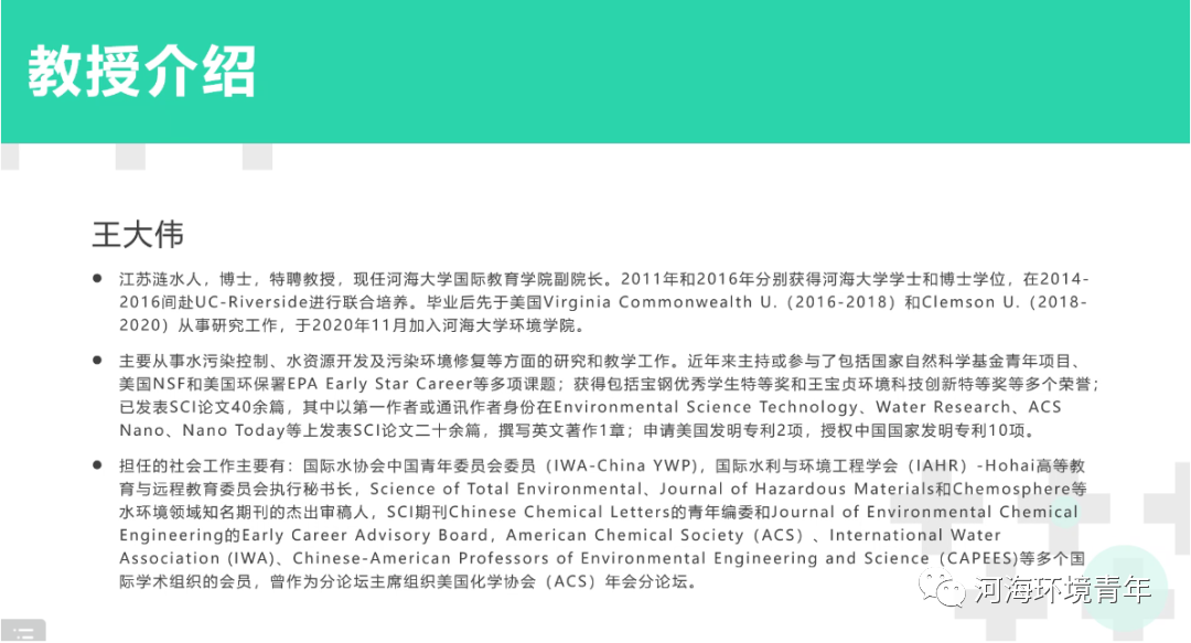 王教授由好莱坞电影《Dark Waters》引入上世纪的全氟化合物对空气造成严重污染这一话题,并由此开始了本次的E家之谈。