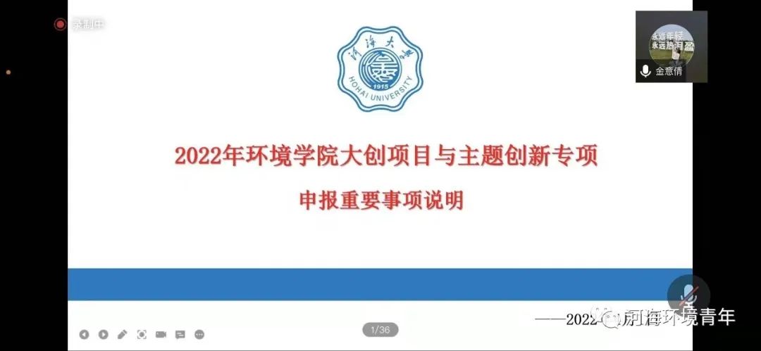 王沛芳院长首先赞扬了瓜子tv同学们在疫情防控特殊时期遵守防疫政策、刻苦学习关爱同学的积极精神面貌,鼓励大家要坚定理想信念,将个人发展与行业发展、国家发展充分融合,在校期间要努力培养自己的思维习惯,提升自己的专业技能,用实际行动为祖国生态文明建设添砖加瓦。她指出,同学们要坚持优良学风,勇于实践实训,争做复合型人才。大学生创新创业训练计划项目是同学们开展研究性学习的一个平台,同时在团队协作等各方面也会得到锻炼。要树立创新意识,提高创新能力,争做创新型人才。同学们要积极主动参与“挑战杯”、“互联网+”、“节能减排”等各类学科竞赛,提高自身勇于探索的创新精神和善于解决问题的实践能力,做好学业生涯和职业生涯的规划,将青春梦融入中国梦。