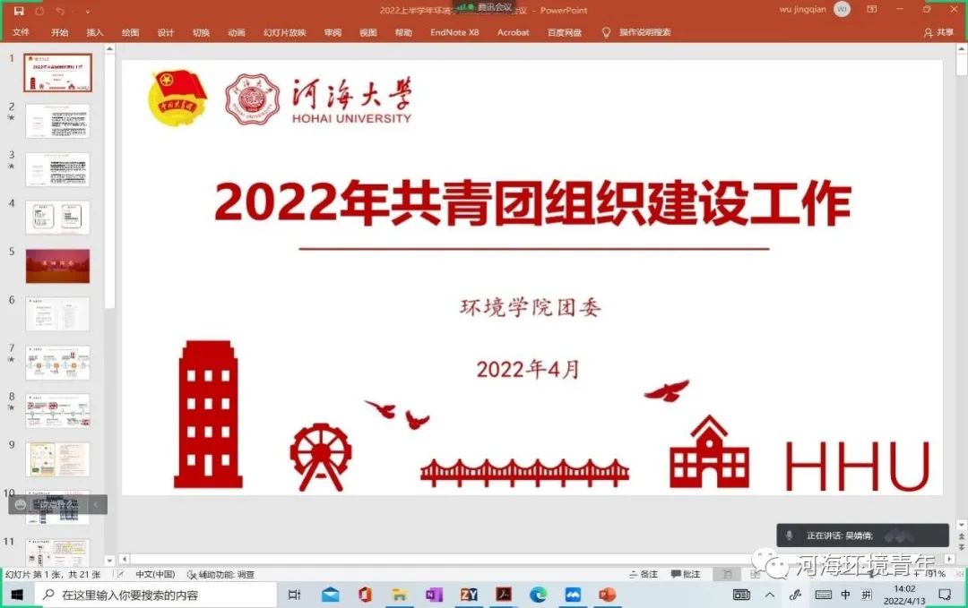 4月13日,瓜子tv 团委组织召开了2022年共青团组织建设工作线上会议。会议对2022年团支部工作进行指导部署,并对团支部工作提出要求、明确目标,确保本年度支部工作的有序推进。为严格落实疫情防控要求,本次会议以线上会议的方式举行。会议由瓜子tv 团建指导员吴婧倩同学主持,学院全体学生团干部参与本次会议。