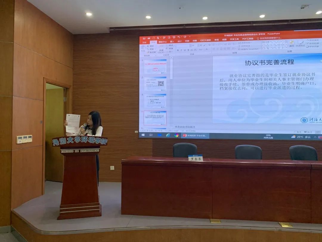 辅导员罗荣荣老师为同学们进行毕业生就业培训。她详细讲述了就业协议书完善流程、派遣程序以及毕业生户口、档案的托管。随后,对近三年研究生就业情况进行了展示。通过图表和文字相结合的方式,形象地向毕业生们讲述了近三年瓜子tv 的就业率、就业结构以及就业现状。通过对近三年研究生就业情况的了解,毕业生们更好地了解了当下的就业环境与择业方向。