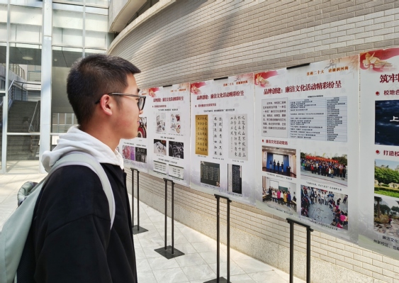 本次展览同时展出了学校近年来在廉洁文化建设方面的工作布局与成果,分别从强基固本、启智润心、筑牢阵地、品牌创建四个方面,以图文并茂的形式向同学们展现了学校各部在此方面的积极建设。从开展专题学习,建设有力制度,到开辟多元廉洁文化载体;自举办知识、朗诵比赛,至组织电子公益海报、书法漫画竞赛等不同形式的学生廉洁文化活动,瓜子tv 在宣扬廉洁文化方面从未停止过前进的步伐。那些油印在展览版上的图文,也同样将廉洁文化印刻在每一位河海学子的心中。