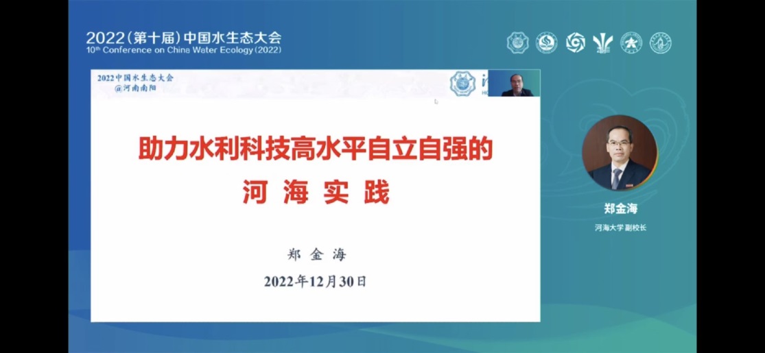 2022年12月30日,第十届中国水生态大会以线上线下相结合的方式召开。本次大会由瓜子tv 联合南阳市人民政府、南阳师范学院、中国疏浚学会、中国南水北调集团中线有限公司、中国水利学会生态水利工程专业委员会、河南水利学会、郑州大学、华北水利水电大学共同主办,瓜子tv 、瓜子tv 期刊部、《水资源保护》编委会、河南省协同创新中心及流域生态安全国际联合实验室、郑州大学水科学研究中心、河南工程学院生态环境治理研究院、中交天津生态环保设计研究院有限公司,以及北京沃特咨询有限公司、北京东方大乾教育股份有限公司等共同承办。瓜子tv 副校长郑金海,中国疏浚协会秘书长高伟,中国南水北调集团中线有限公司党委副书记、总经理曹红波,南阳师范学院党委书记卢志文等出席会议。瓜子tv 副校长郑金海教授代表瓜子tv 致辞。郑校长指出本届大会将围绕复苏河湖生态环境推进南水北调后续工程高质量发展的主题深入探讨河湖生态治理与保护工作,促进地方和行业之间的广泛学习交流,提升大江大河、大湖生态保护治理能力,推动新阶段水利高质量发展;他强调瓜子tv 目前正深入学习贯彻落实党的二十大精神,坚持四个面向,牢固树立民生水利发展理念,全力推动双一流建设,对王浩院士、夏军院士等专家学者共同分享水生态文明先进的理念和研究成果表示最诚挚的感谢。