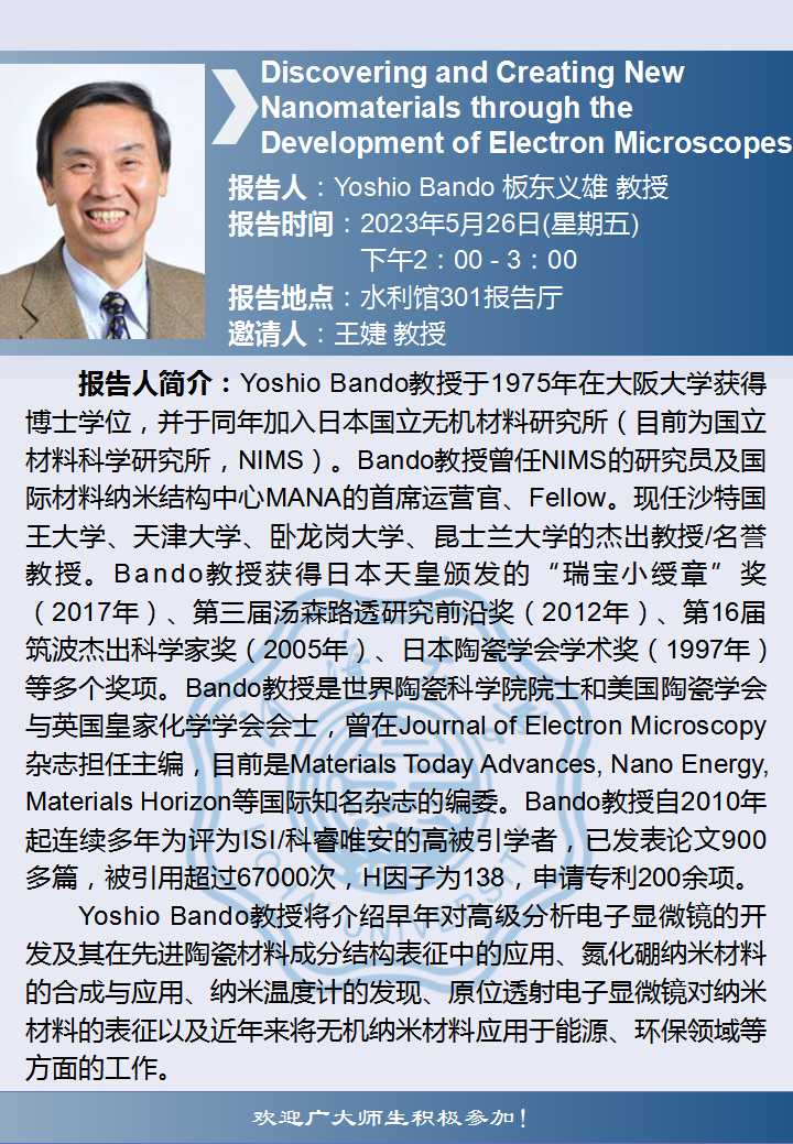 瓜子tv 学术报告:Discovering and Creating New Nanomaterials through the Development of Electron Microscopes
