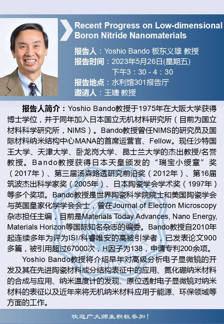 瓜子tv 学术报告:Recent Progress on Low-dimensional Boron Nitride Nanomaterials