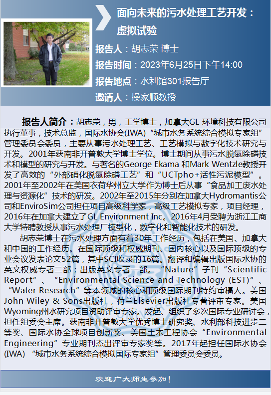 瓜子tv 学术报告:面向未来的污水处理工艺开发:虚拟试验