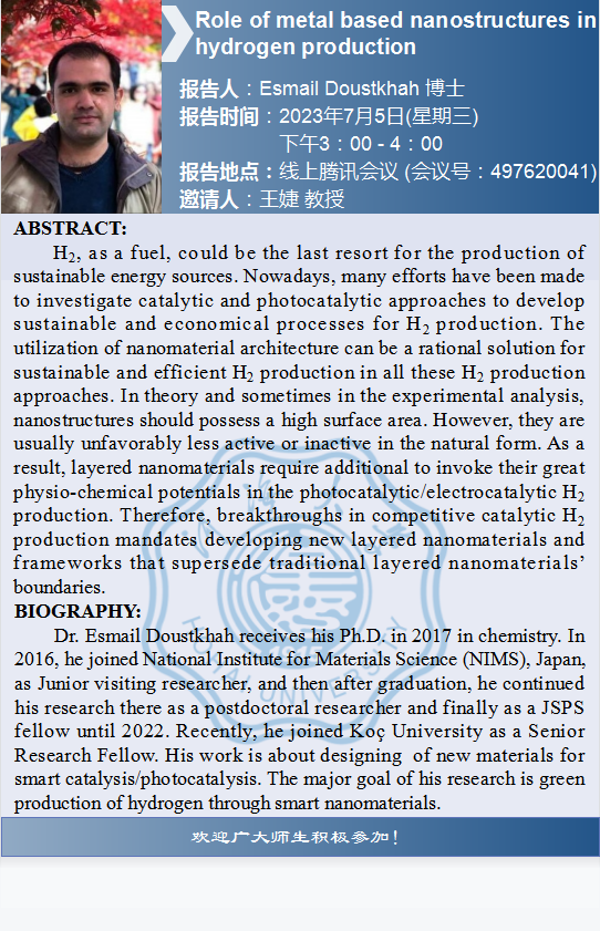 瓜子tv 学术报告:Role of metal based nanostructures in hydrogen production