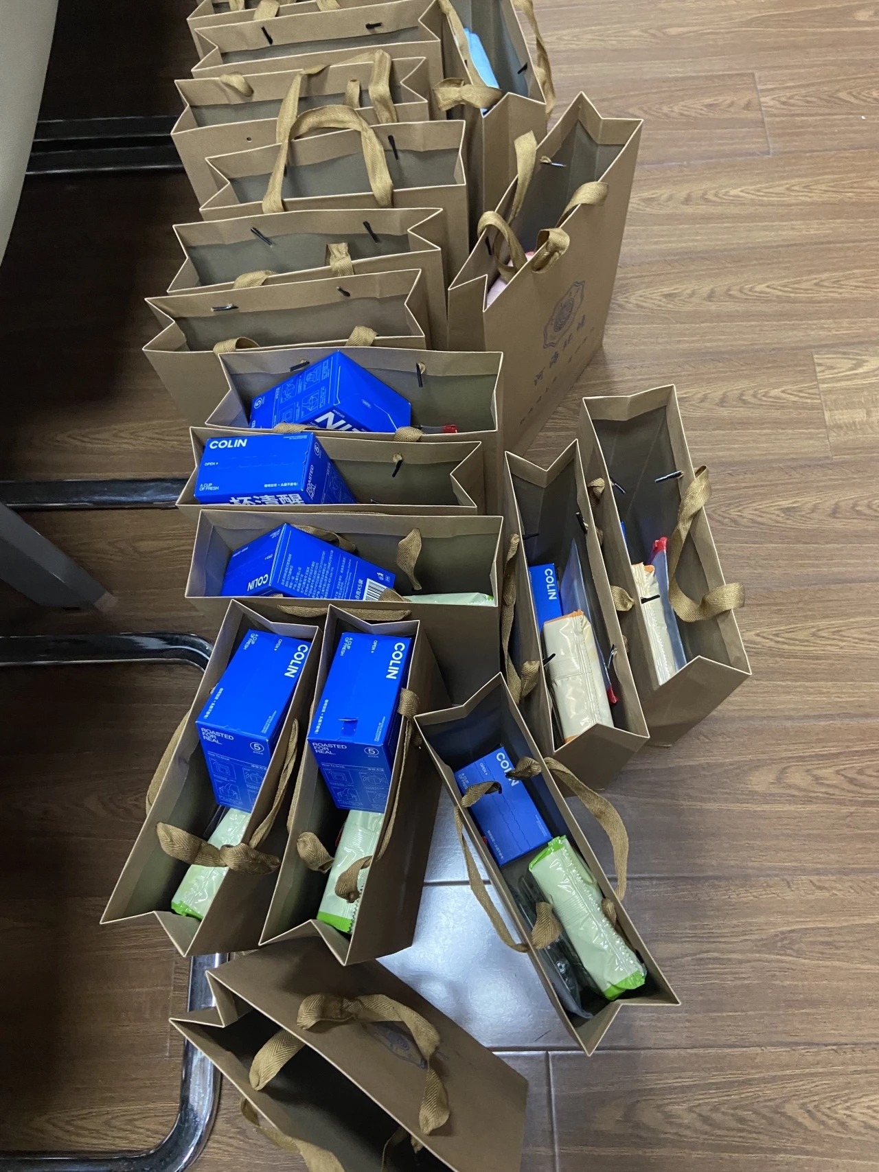 老师和同学们早早地来到办公室,分装、打包、挂祝福贺卡……悄悄为考研学子准备这份冬日惊喜。
