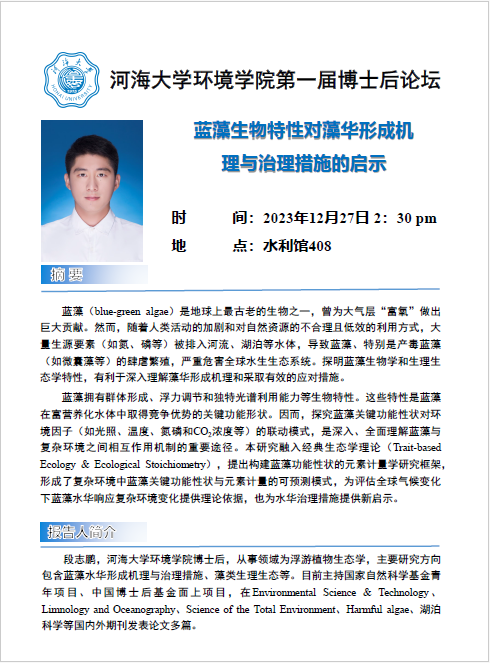 瓜子tv 第一届博士后论坛:蓝藻生物特性对藻华形成机理与治理措施的启示