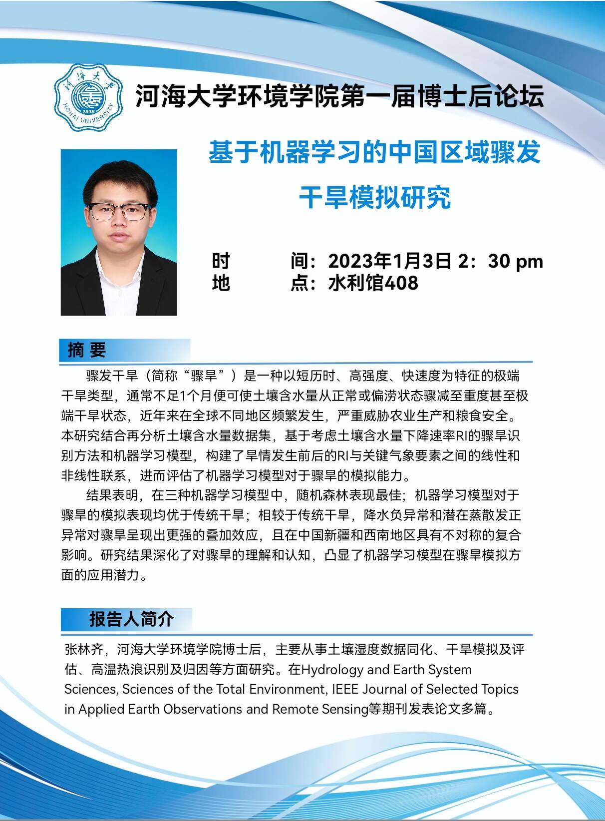 瓜子tv 第一届博士后论坛:基于机器学习的中国区域骤发干旱模拟研究