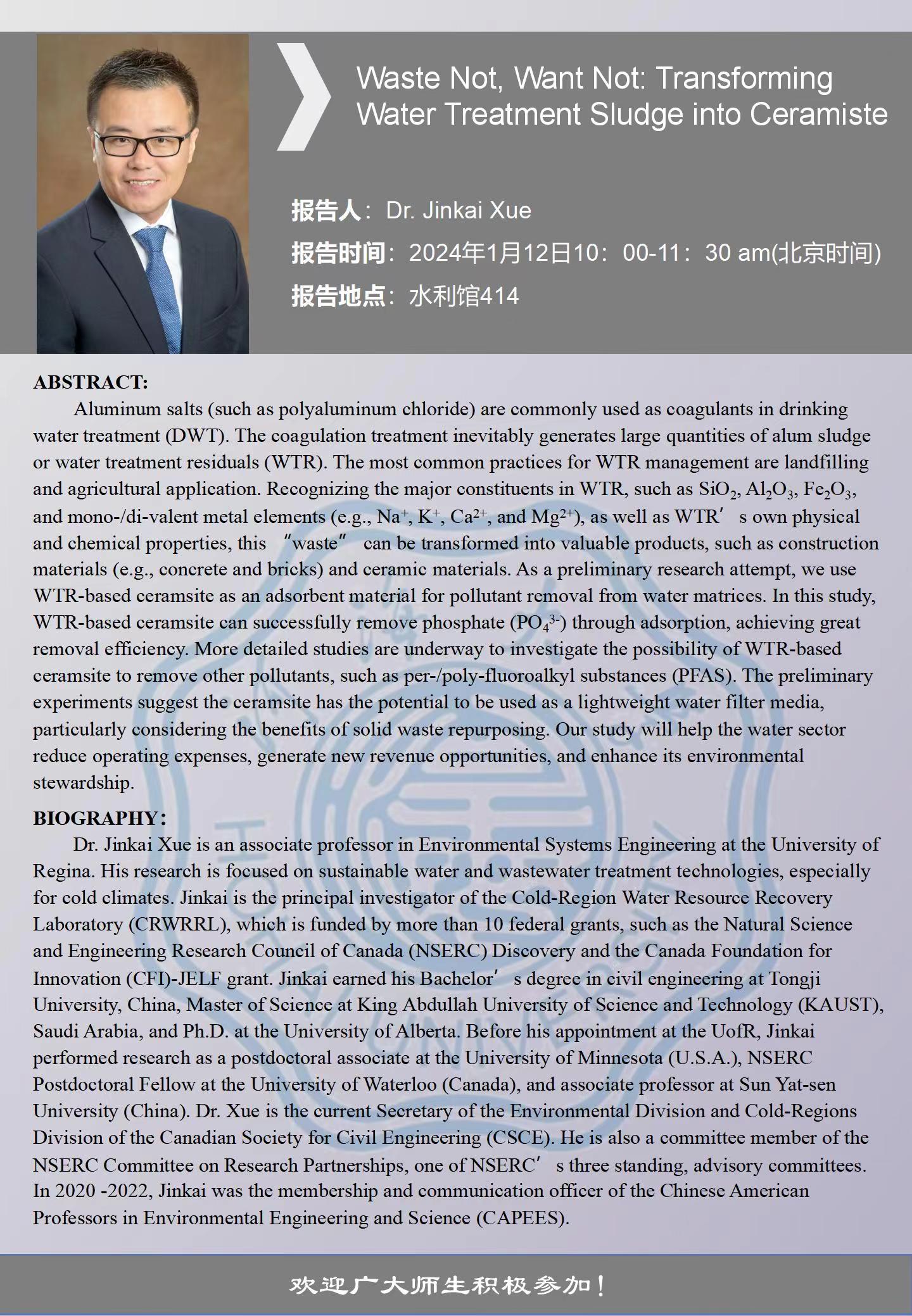瓜子tv 学术报告:Waste Not, Want Not: Transforming Water Treatment Sludge into Ceramiste