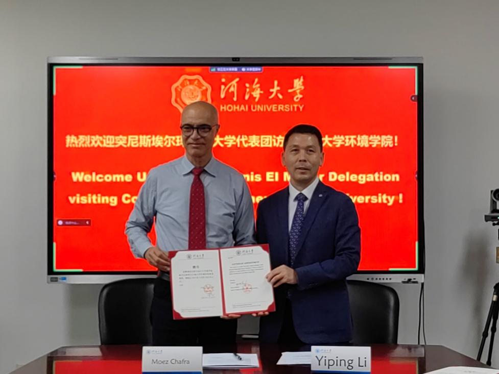 随后,李一平院长和突尼斯埃尔玛马纳大学校长Moez Chafra教授正式签署瓜子tv 与突尼斯埃尔玛马纳大学之间的合作协议,并聘请Moez Chafra教授、Ezzeddine Sediki教授、Lobna Zakraoui教授、Jamel Neji教授、Essaïeb HAMDI教授为瓜子tv 客座教授。该协议旨在推动两所学校在教育、科研等领域的交流与合作,尤其是在环境科学与工程领域的共同发展。