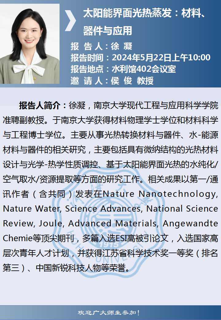 两山讲堂学术报告:太阳能界面光热蒸发:材料、器件与应用