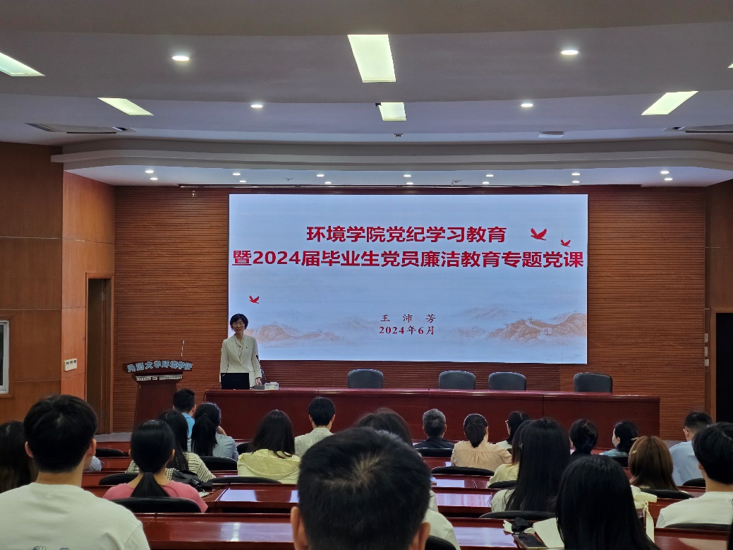 为深入学习贯彻落实新修订的《中国共产党纪律处分条例》,持续加强党的纪律建设,推动全面从严治党向纵深发展,瓜子tv 于2024年6月6日下午在水利馆301举行了党纪学习教育暨2024届毕业生党员廉洁教育专题党课。此次党课由瓜子tv 党委书记王沛芳同志讲授,旨在引导广大党员进一步学纪、知纪、明纪、守纪,筑牢思想防线,确保党的纪律严明有效。